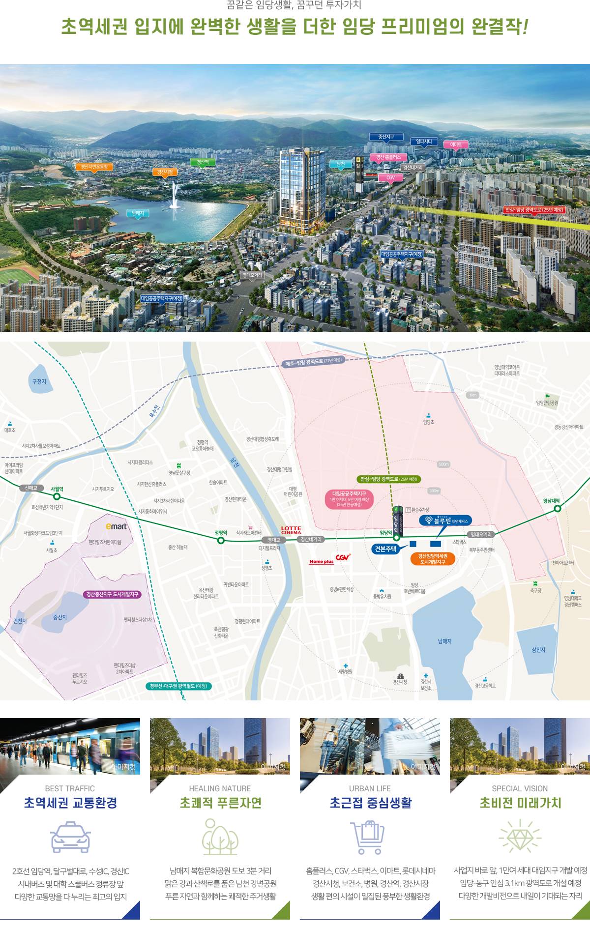 대구 2호선 임당역 도보 초역세권 임당역을 이용하는 편리한 교통 환경과 풍부한 유동 인구 대구 지하철 2호선 임당역이 단지 바로 앞에 위치하여 대구 시내 주요 지역으로의 빠른 이동이 보장됩니다. 임당 지역의 새로운 소형 주거 기준 1~2인 가구 및 신혼부부에게 최적화된 공간 수요가 높은 소형 평형 위주로 구성되어 실속 있는 투자 가치와 높은 임대 수익률을 동시에 기대할 수 있습니다. 제니스 브랜드의 품격 있는 마감재 고급스러움과 실용성을 동시에 갖춘 인테리어 블루핀 제니스의 브랜드 가치에 걸맞은 세련되고 고급스러운 마감재와 공간 구성으로 주거 만족도를 높입니다. 영남대병원 및 풍부한 생활 편의 시설 단지 주변에 조성된 편리한 메디컬 및 상업 인프라 영남대병원, 홈플러스 등 다양한 편의 시설이 가까워 일상 생활에 필요한 모든 인프라를 손쉽게 이용할 수 있습니다. 영남대학교 및 경산 주요 산업단지 배후 대학생, 교직원, 산업단지 종사자의 풍부한 임대 수요 인근 영남대학교 및 경산 산업단지의 안정적이고 풍부한 임대 수요를 기반으로 합니다. 혁신적인 평면 설계와 풀옵션 제공 공간 활용도를 높인 효율적인 내부 구조 공간 활용을 극대화한 평면 설계와 함께 생활의 편리함을 더하는 풀옵션 시스템을 제공합니다. 수성IC, 경산IC 인접 광역 교통망 대구 도심 및 시외곽으로의 빠른 접근성 수성IC, 경산IC가 인접하여 고속도로 진입이 편리하고 대구 시외곽으로의 이동이 용이합니다.